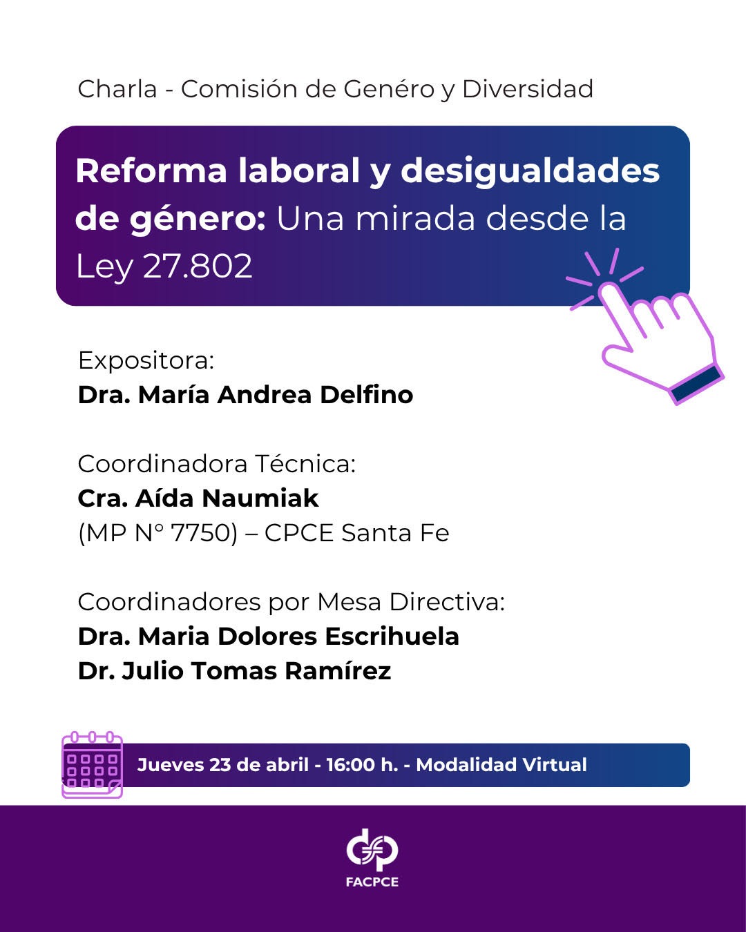 Día: miércoles 22 de abril de 2026 a las 17:00hs Expositora: Cra. Mirian Roldan. Aranceles Matriculados...