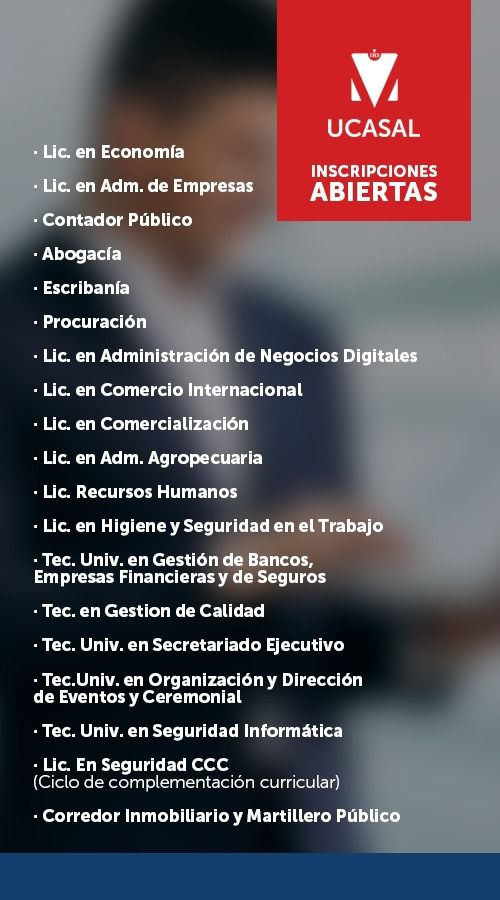 Beneficio: 10% de descuento en los aranceles de todas las carreras de pregrado, grado y posgrado de la UCASAL, en modalidades presenciales y a distancia.